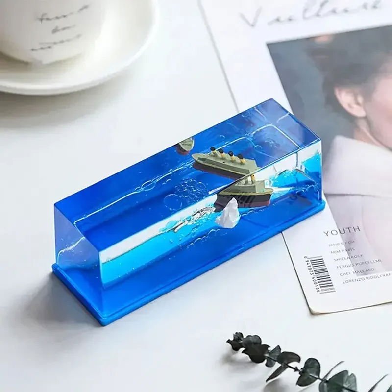 - Design Unique : Une réplique miniature détaillée d’un bateau flottant dans une mer artificielle pour une immersion totale.