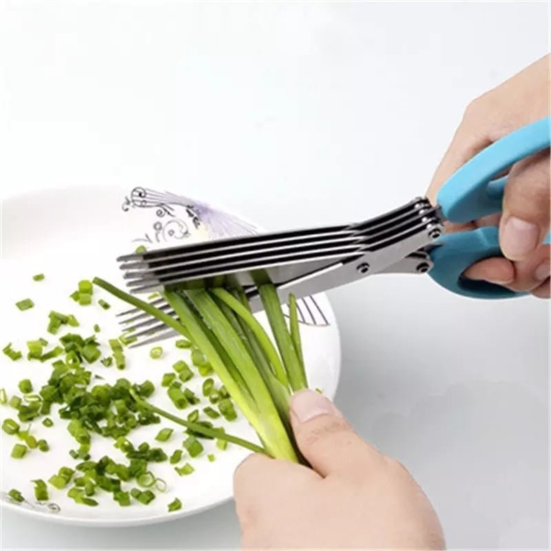 Ciseaux de cuisine multicouches en acier inoxydable, coupe légumes échalote, herbes.