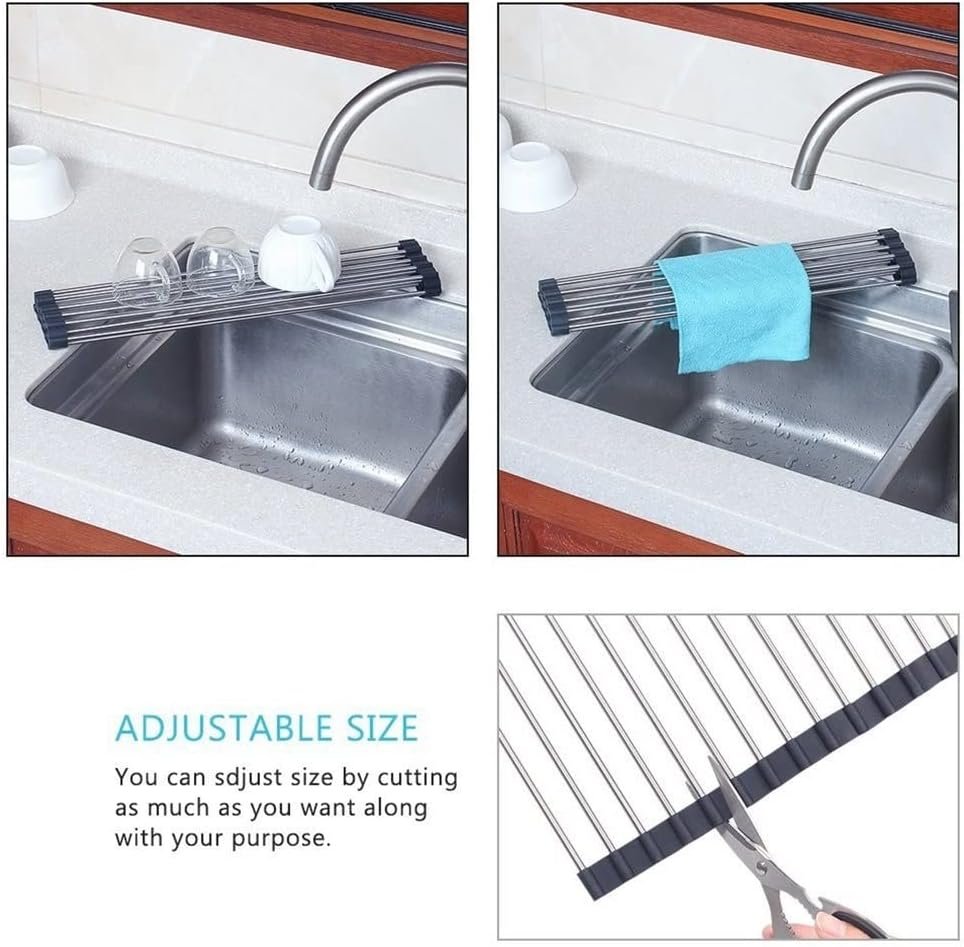 Égouttoir à Vaisselle Enroulable Pliable en Acier Inoxydable