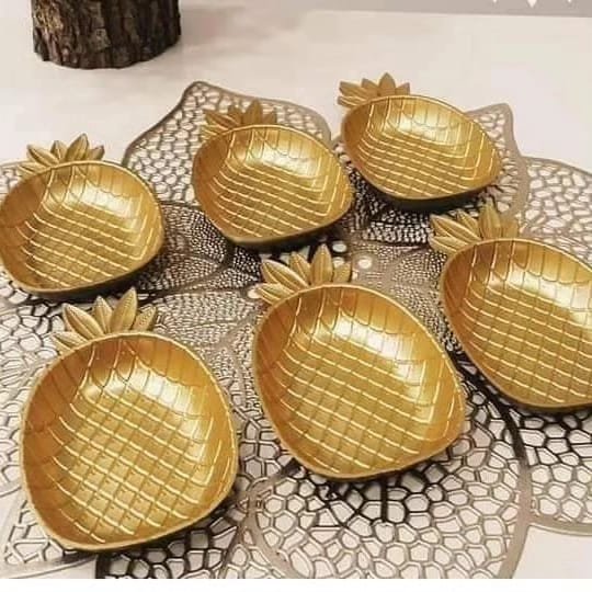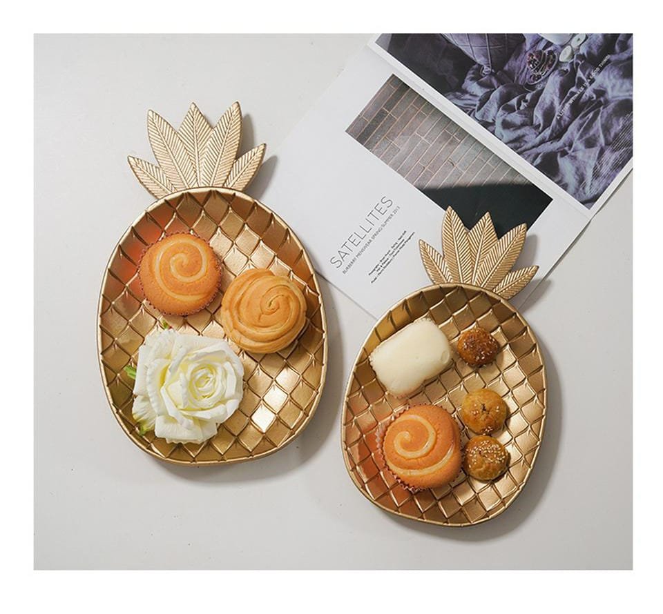 Ensemble de plateaux à gâteaux en or, 3 pièces, ananas, britware, support à strass, assiettes pour les plats de nourriture pour servir, décor, plats de table