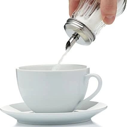 Sucrier doseur au design rétro. Couvercle et bec en inox pour une bonne conservation et récipient en verre Security.
